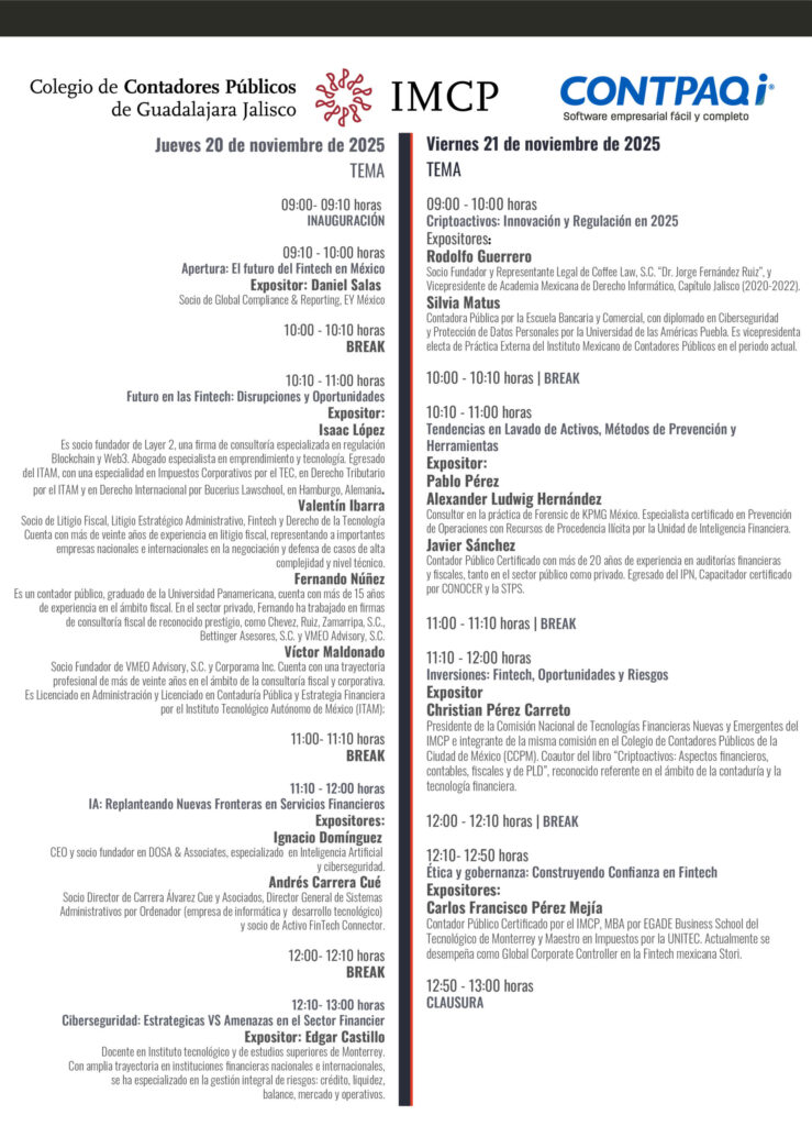 | 20 y 21 de noviembre de 2025 de 09:00 a 13:00 horas (hora centro)