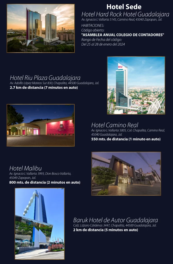 | Viernes 26 de enero 2024 a las 08:00 horas (hora centro) | Hotel Hard Rock Av. Ignacio L. Vallarta 5145, Camino Real, 45040 Zapopan, Jal. |