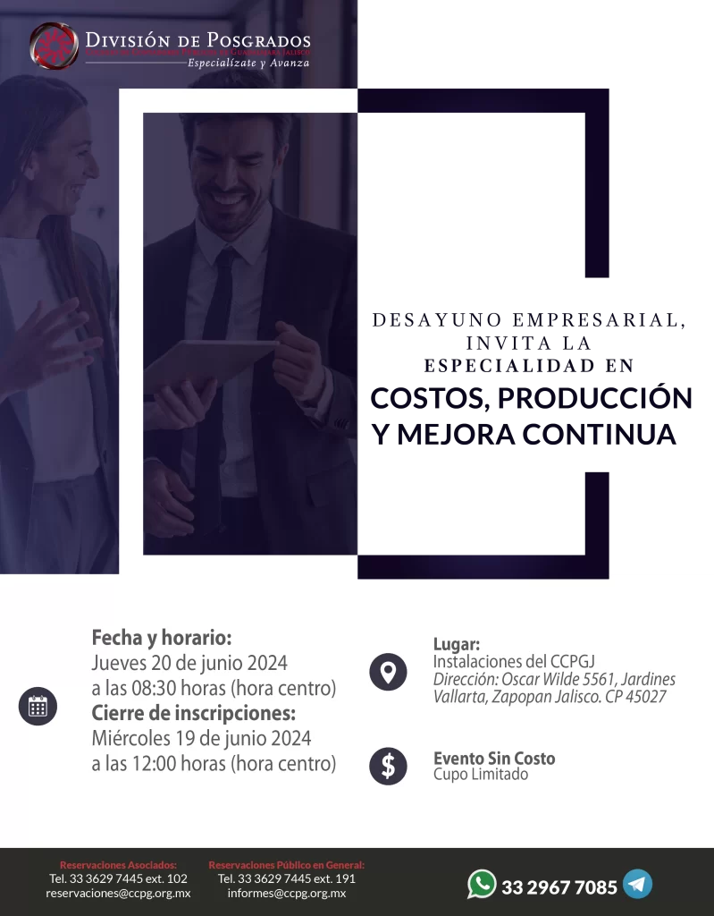 Desayuno Empresarial, Invita la Especialidad en Costos, Producción y Mejora Continua